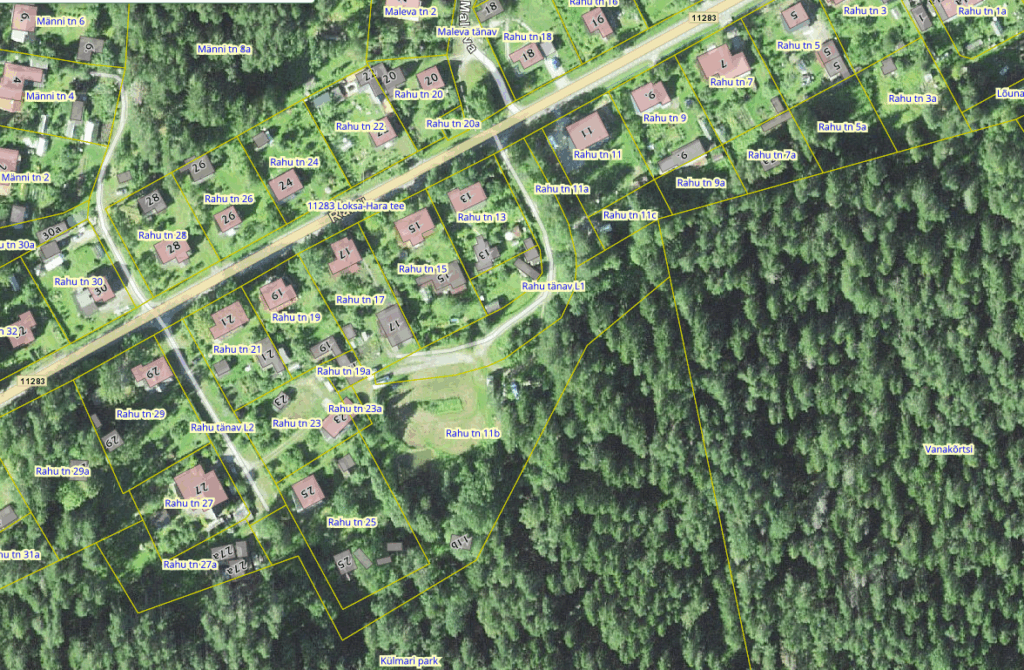 - Rahu tn 27a, katastritunnus 42401:001:0202, pindala 1323 ㎡, sihtotstarve elamumaa 100%.
