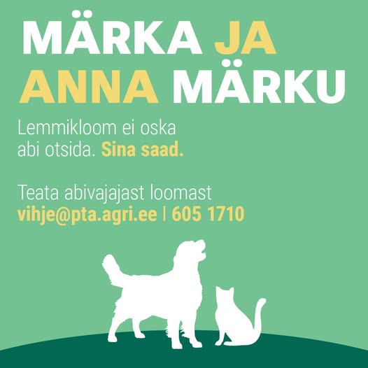 Hädasolevast loomast anna märku kirjutades vihje@pta.agri.ee või helistades 605 1710.